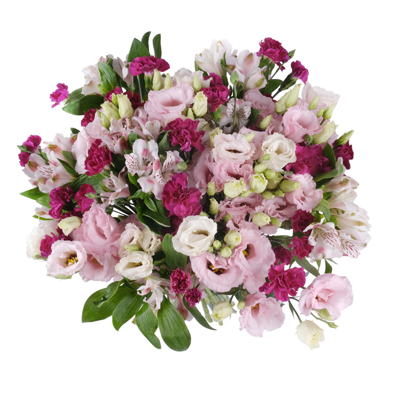 Delikatna eustoma i alstromeria w pastelowych odcieniach, w kontraście z goździkiem o głębszej barwie – to właśnie Miłosny List. Możesz dołączyć bilecik z życzeniami lub drobnym znakiem pamięci.